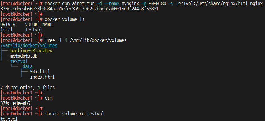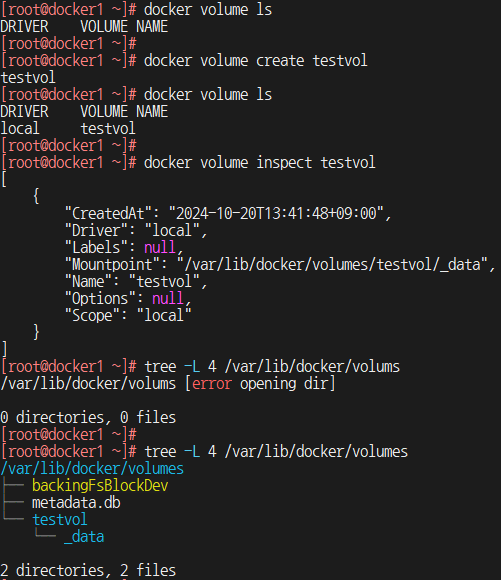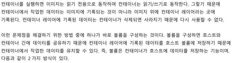 볼륨 방식은 docker root 디렉터리에 저장되고,
