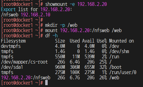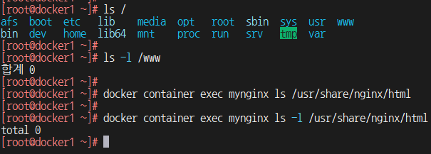 1) web1 컨테이너의 Bash 쉘을 실행하여