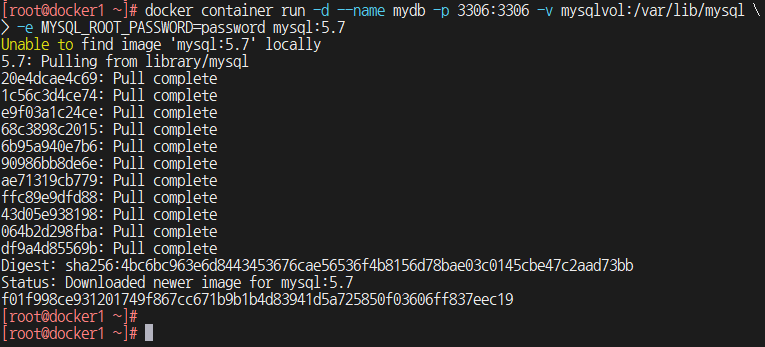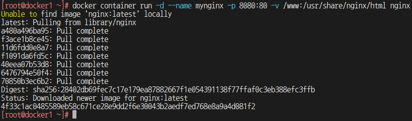 4) 컨테이너 생성 및 바로 시작