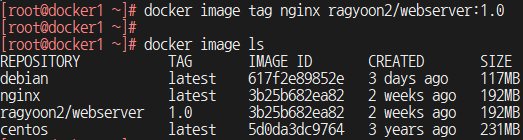 이 명령을 실행한 후에는 nginx 이미지를 username/webserver:1.0이라는