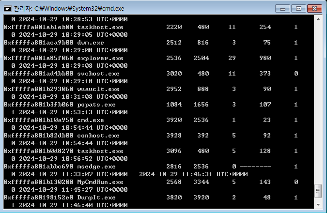 이번에는 3.mem 덤프 프로세스 파일을 생성하여 pslist로 확인했다
