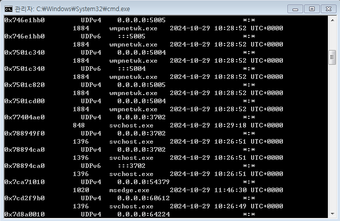 오늘은 추가로 네트워크 정보를 출력하는 netscan에 대해서도 배웠다