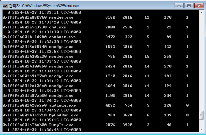 웹 페이지도 실행한 상태이기 때문에 msedge.exe가 확인된다