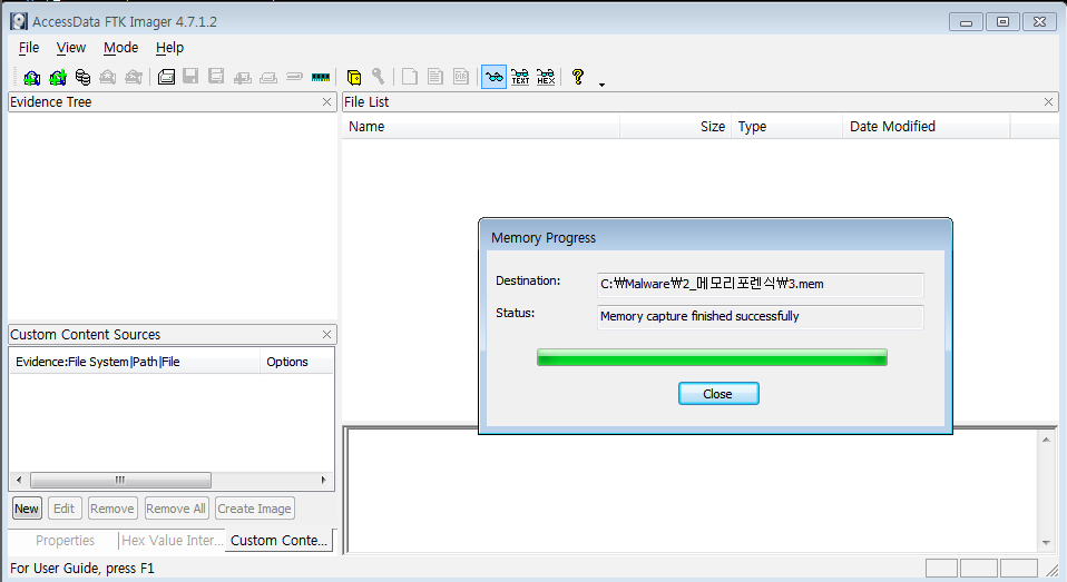 > 메모리 덤프 도구: FTK Imager, Dumpit
