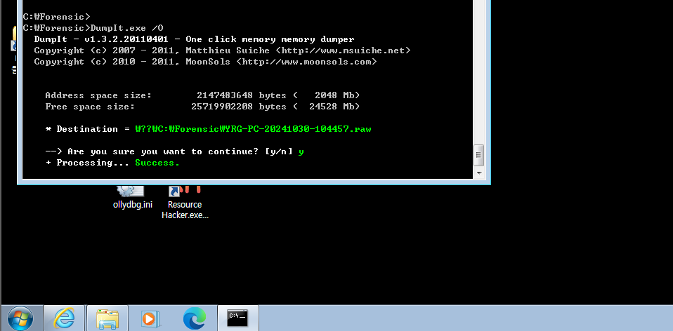 c:\ vola -f 2.raw --profile=Win7SP1x64 filescan | findstr "DumpIt.exe"