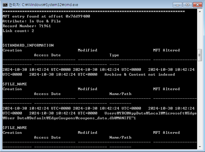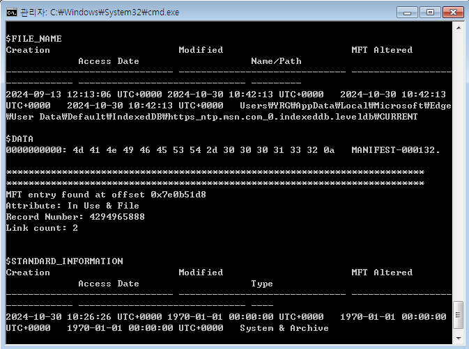 MFT 파싱으로 디스크의 메타 데이터를 추출하는 것도 진행했지만,