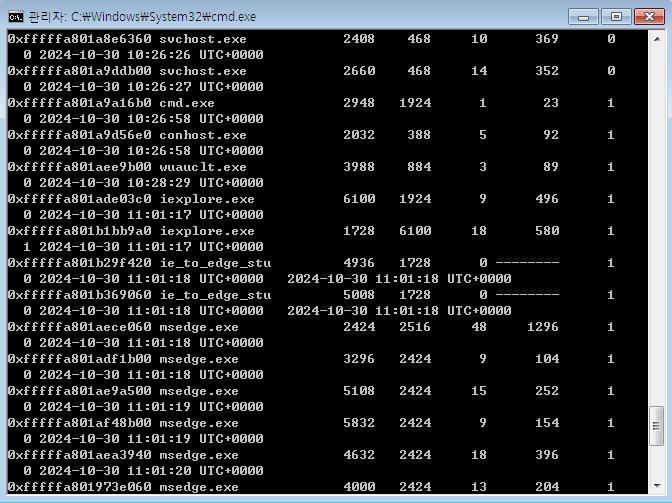 cmd 사용 기록과 프로세스 덤프까지 시도했다