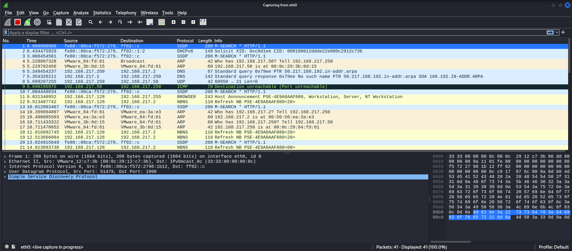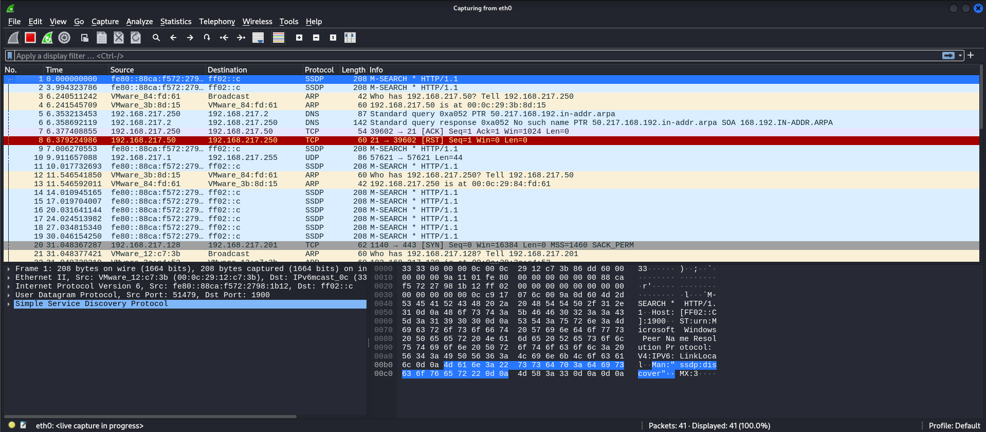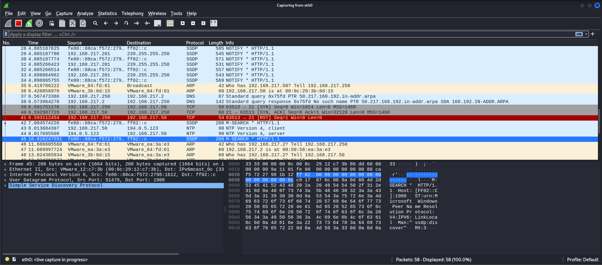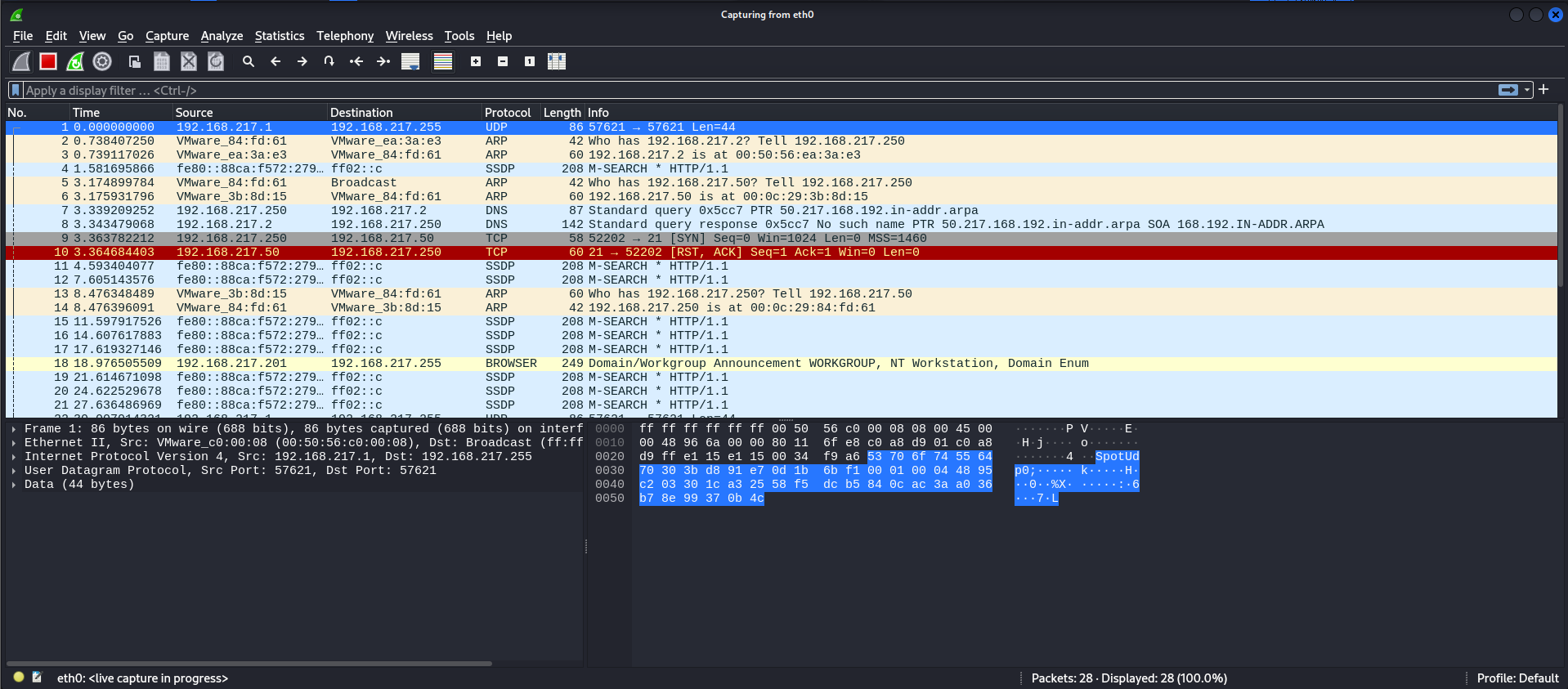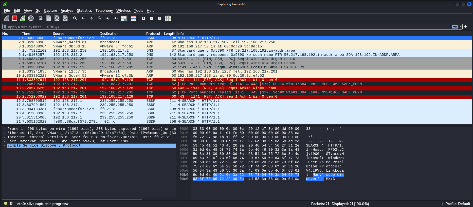 제공하기 때문에 Kali Linux로 wireshark를 실행했다
