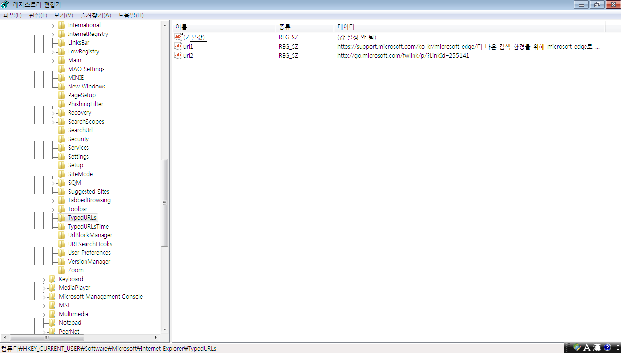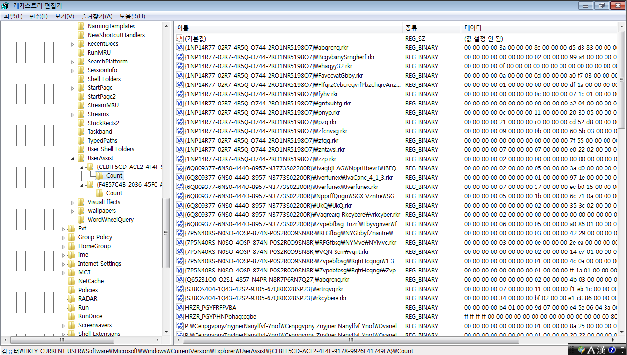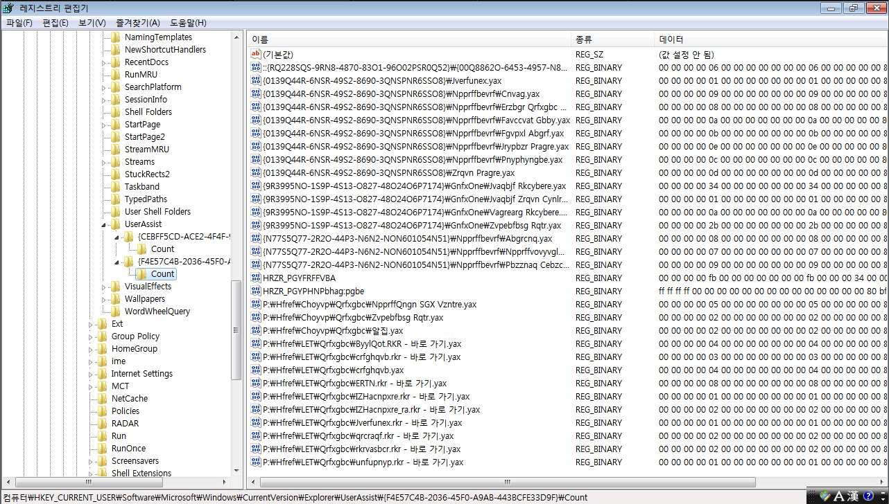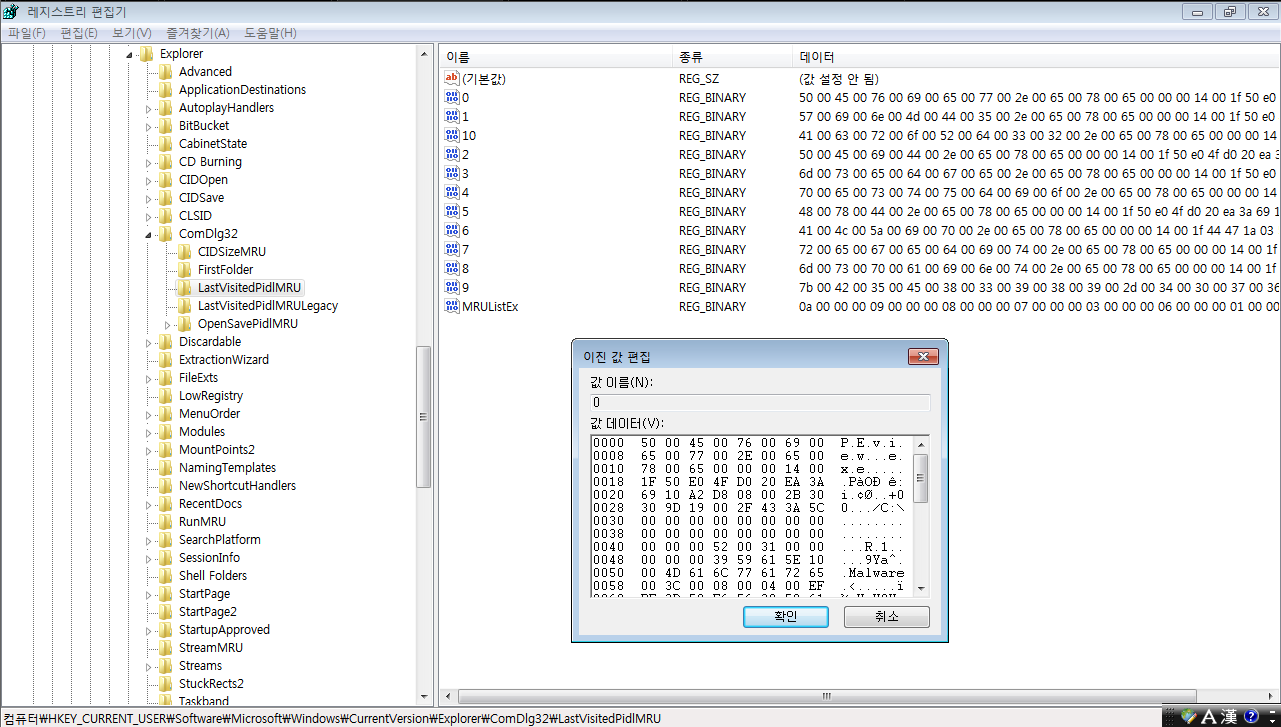 한글을 사용했다면 사용 흔적이 나타나게 된다