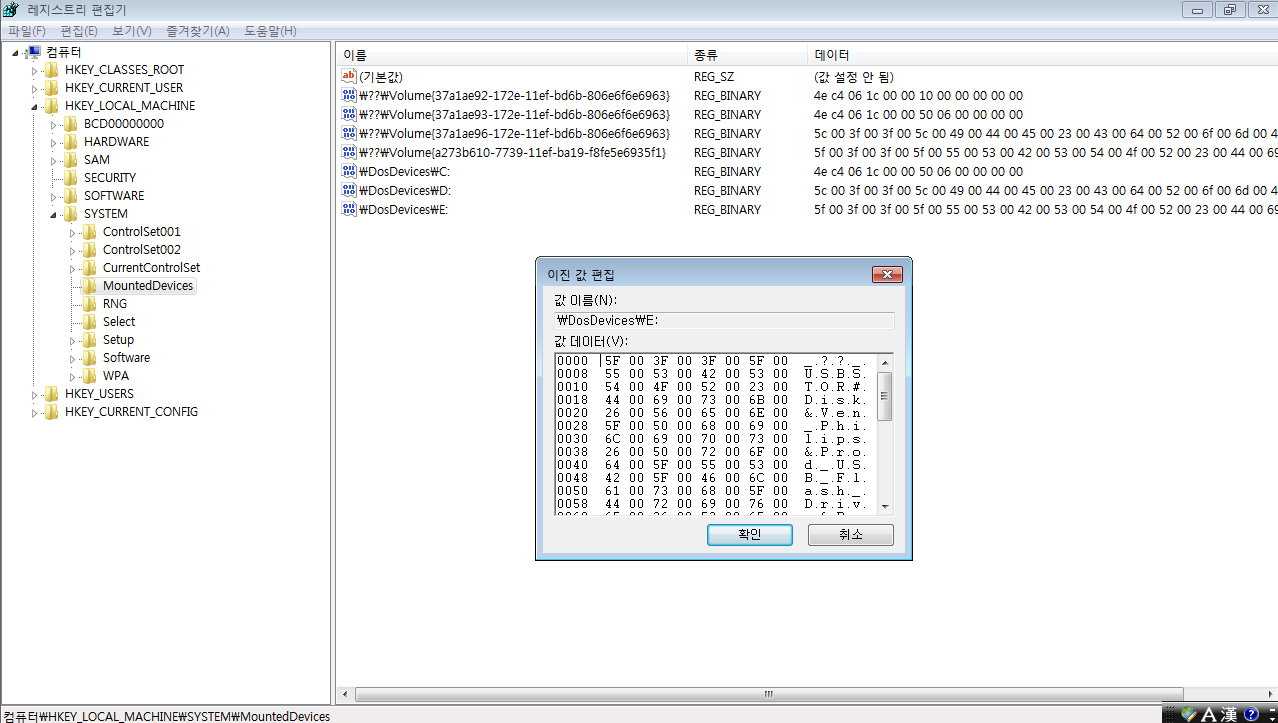 > HKEY_LOCAL_MACHINE\SYSTEM\MountedDevices