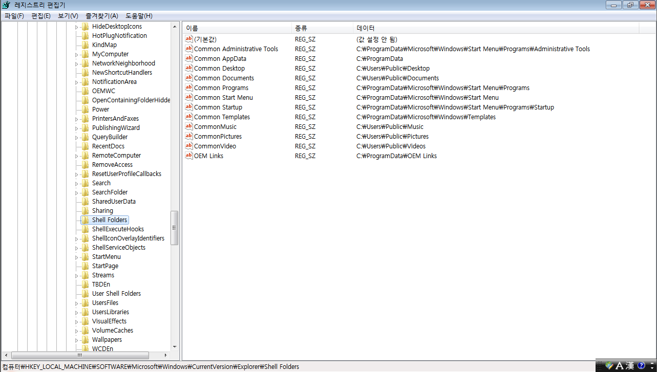 이것 역시 현재 노트북의 레지스트리 편집기를 확인했다