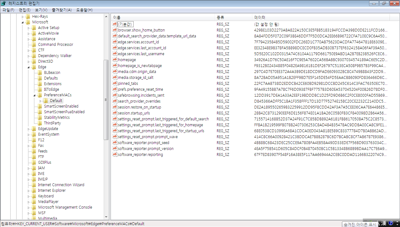 해당 경로에는 Microsoft Edge 브라우저와 관련된 설정 정보가 포함되어 있다