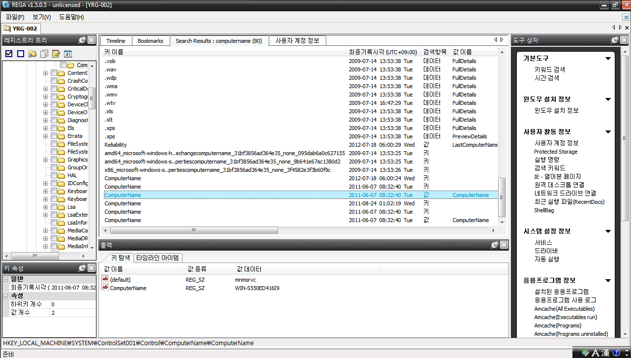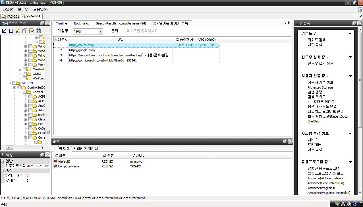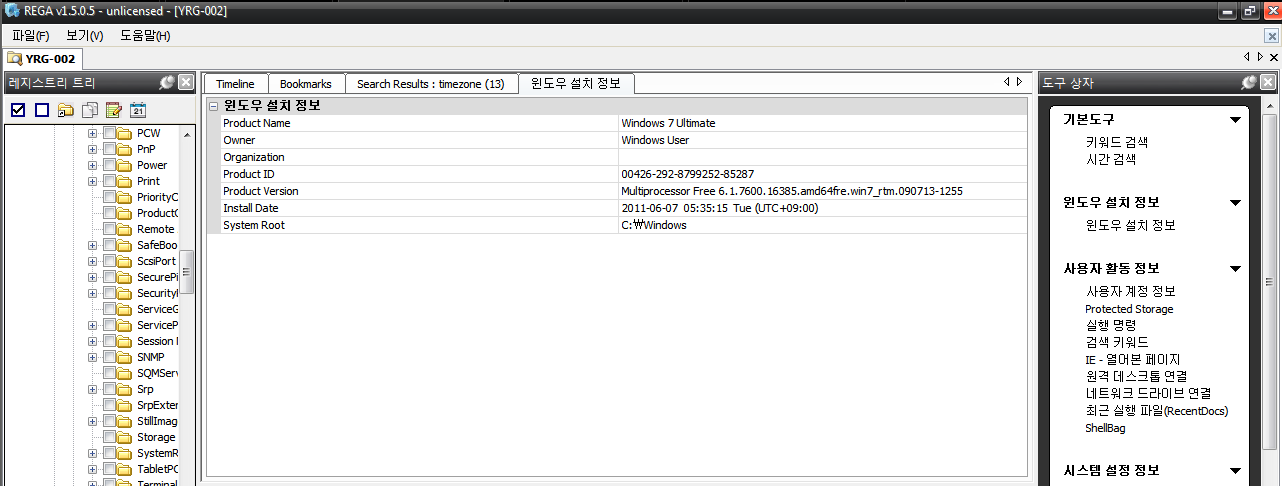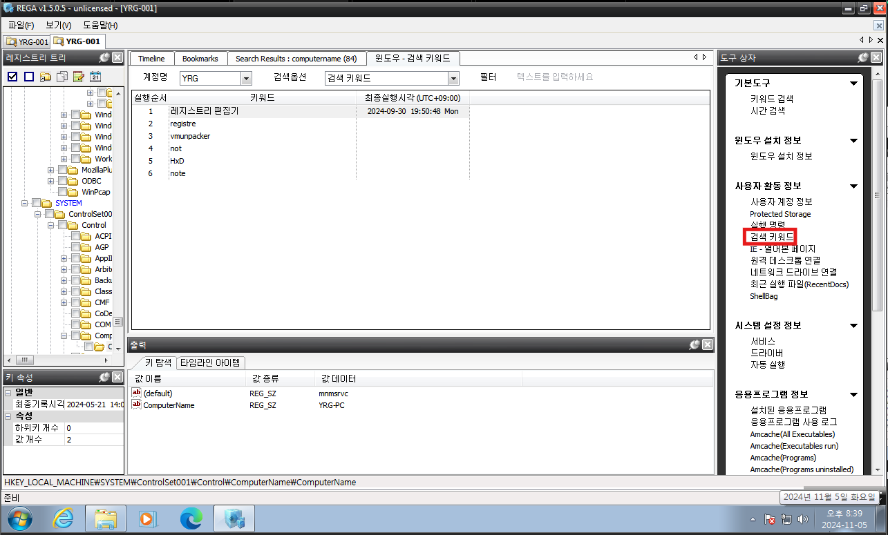 오늘은 디지털 증거를 시작함으로 REGA 프로그램을 사용했다