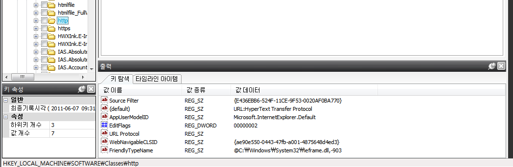경로: HKEY_LOCAL_MACHINE\SOFTWARE\Classes\http