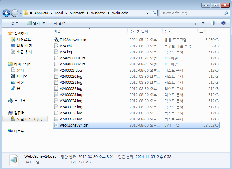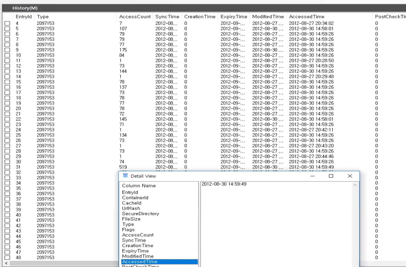 IE 10 이상: %Profile\Appdata\Local\Microsoft\Windows\WebCache\WebCacheV*.dat