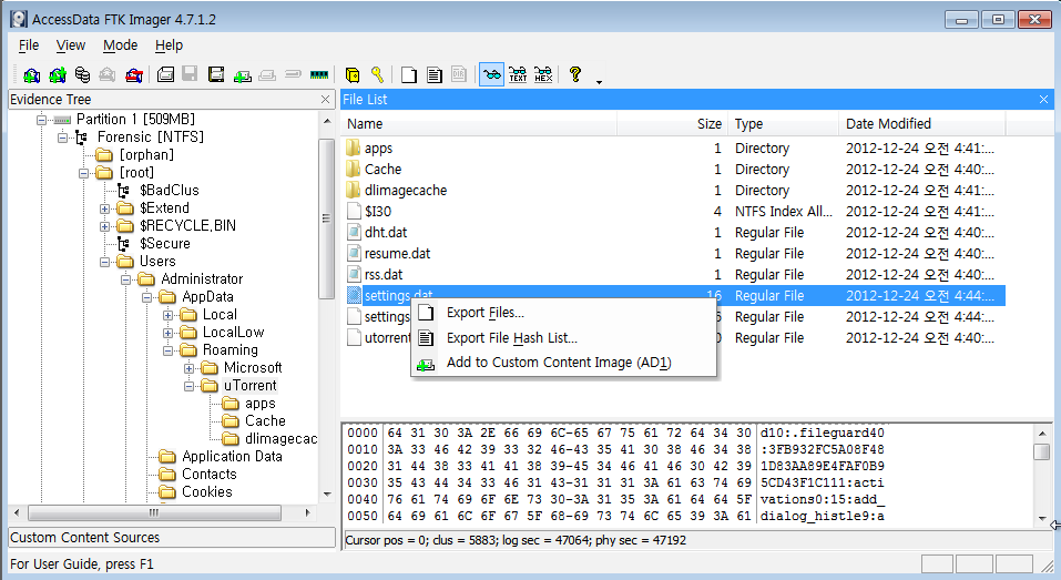 하지만 포렌식을 진행하면서 증거물을 찾아내고