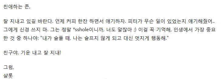 메일 내용을 확인 시 둘의 친분 상태와 메일 내용을 비롯하여