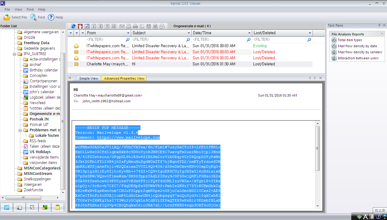 -> kernelostviewer로 메일 내용 확인 / Chrlotte May 메일 확인(암호화)