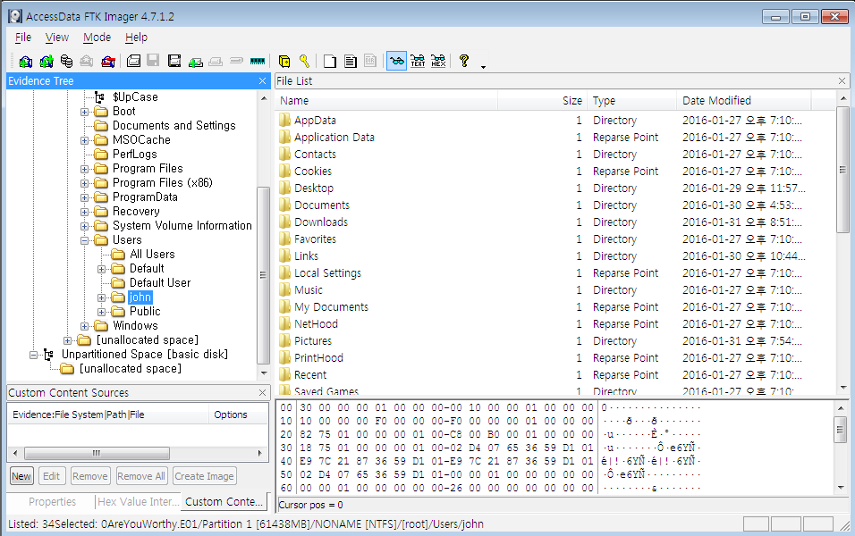 > john 사용자 -> document 디렉터리 -> 사진 파일 추출
