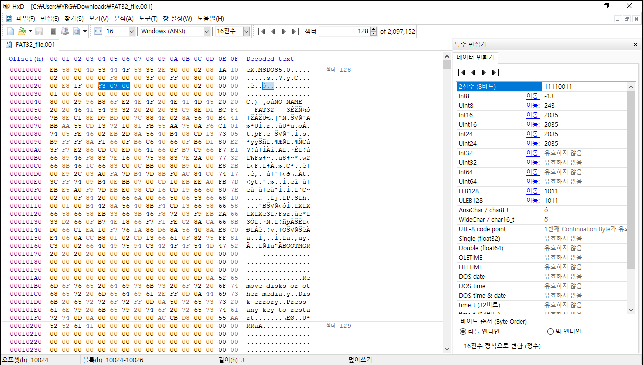 파일명은 FAT32_file.001이다