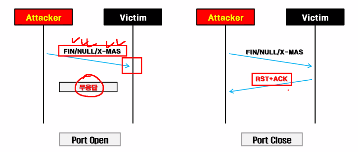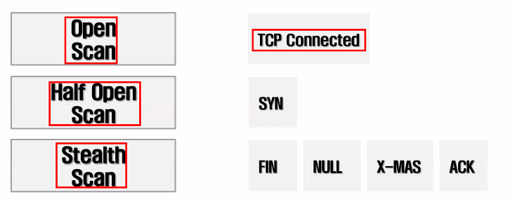 Half Open Scan / SYN -> 2way까지만 연결된다