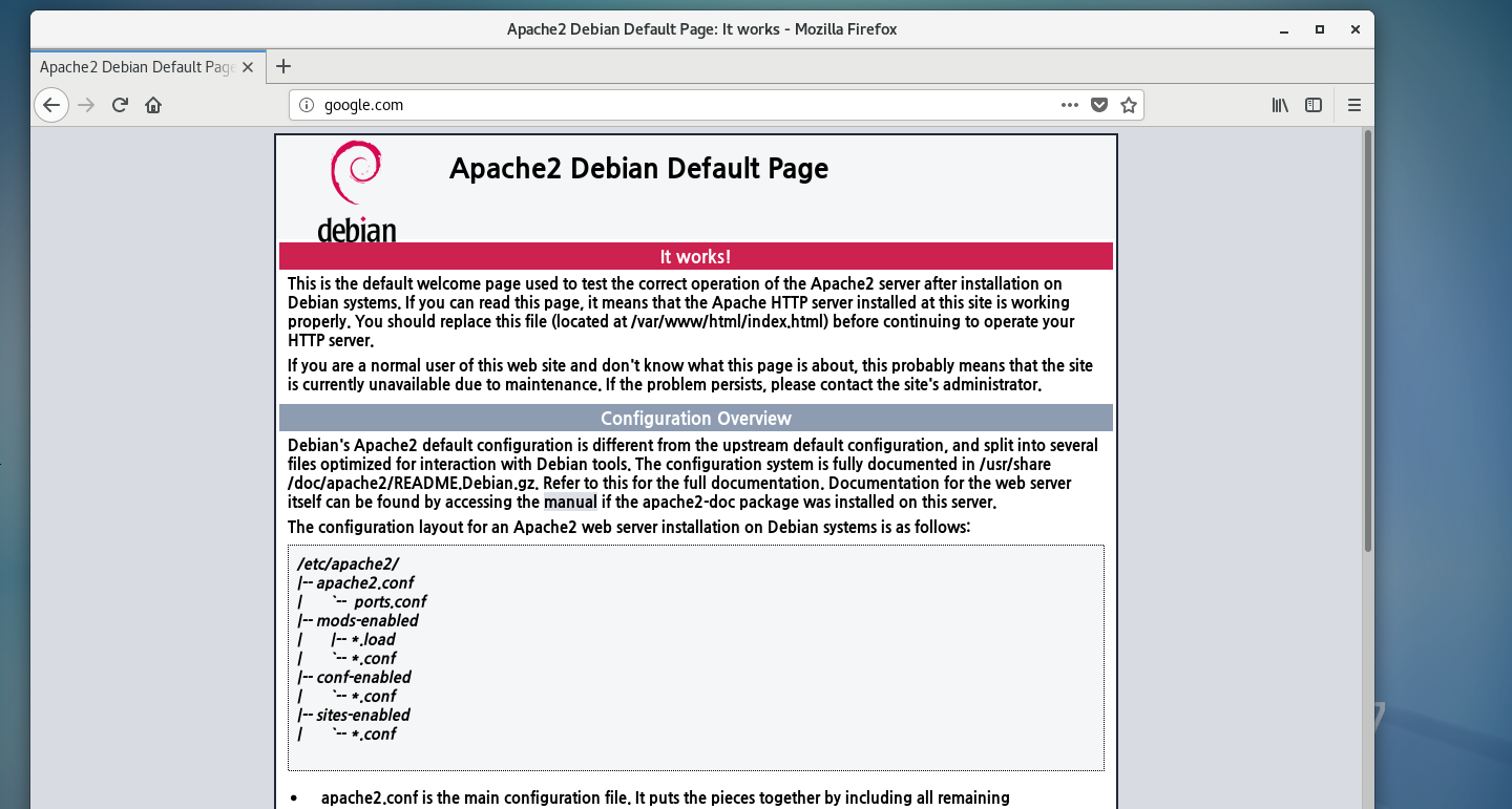 위의 공격이 성공하게 된다면 CentOS7으로 google.com을 검색했을 때 해당 화면이 나와야 한다