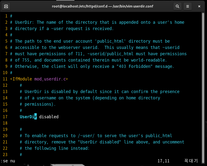 17 # UserDir disable <-- 주석 처리