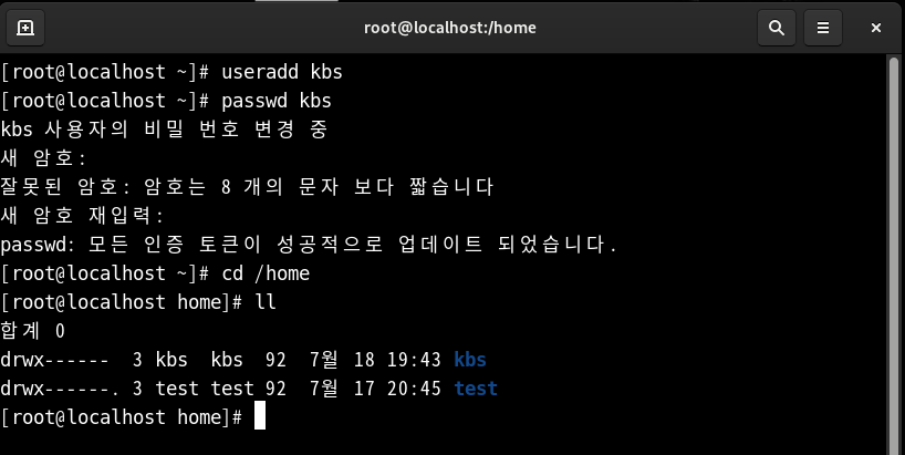 useradd를 이용하여 kbs를 생성한다