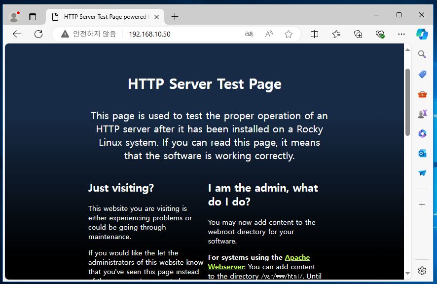 Rocky Linux의 IP 주소로 접속 시 설정해 뒀던 해당 화면이 나와야 된다
