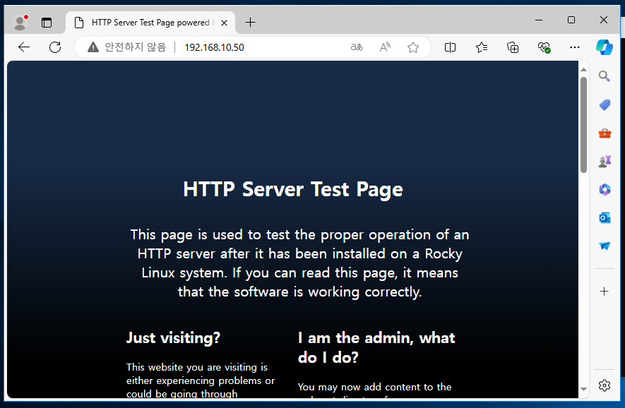 그렇게 되면 Rocky의 50번 서버로 접속해도 테스팅 페이지가 나온다