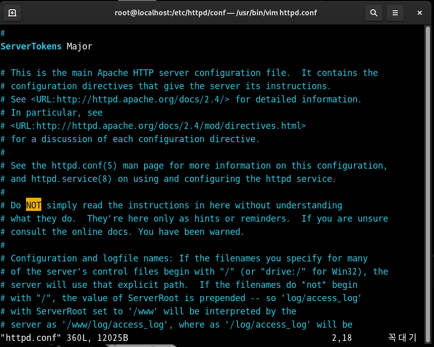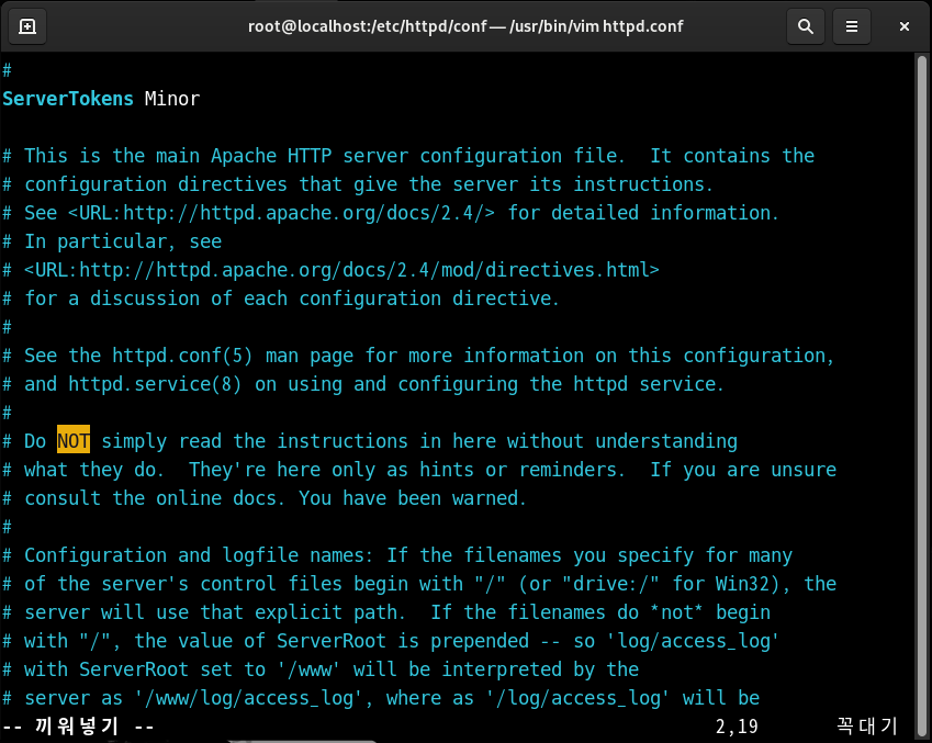 이번에는 conf 디렉터리에서 httpd.html 파일을 열어 보면,