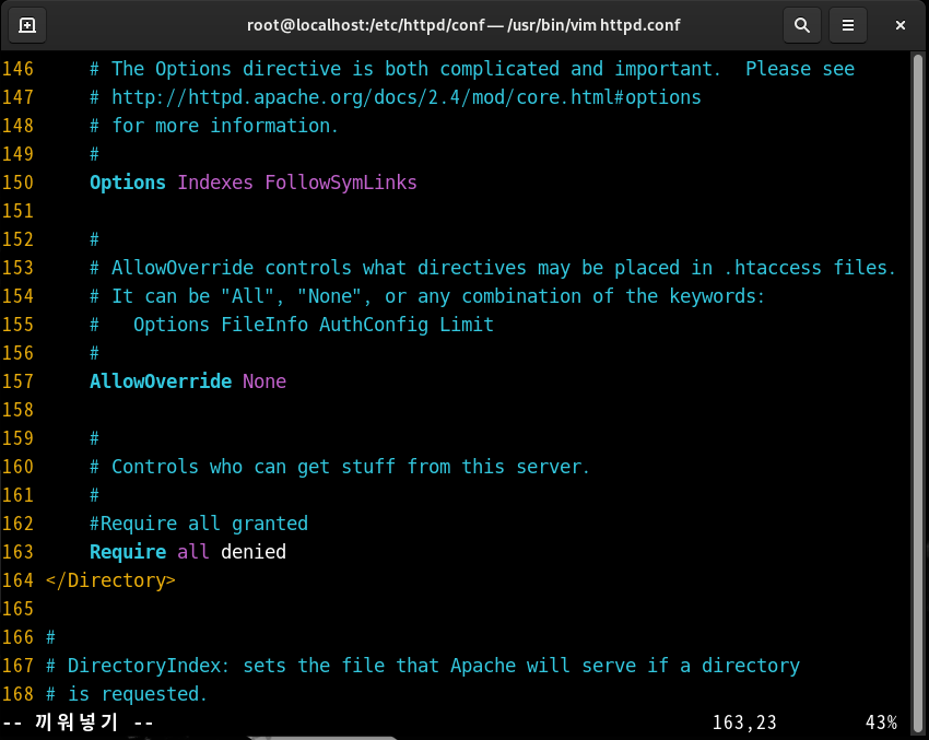 151 Options indexs FollowSymLinks <-- 'indexes' 옵션 제거